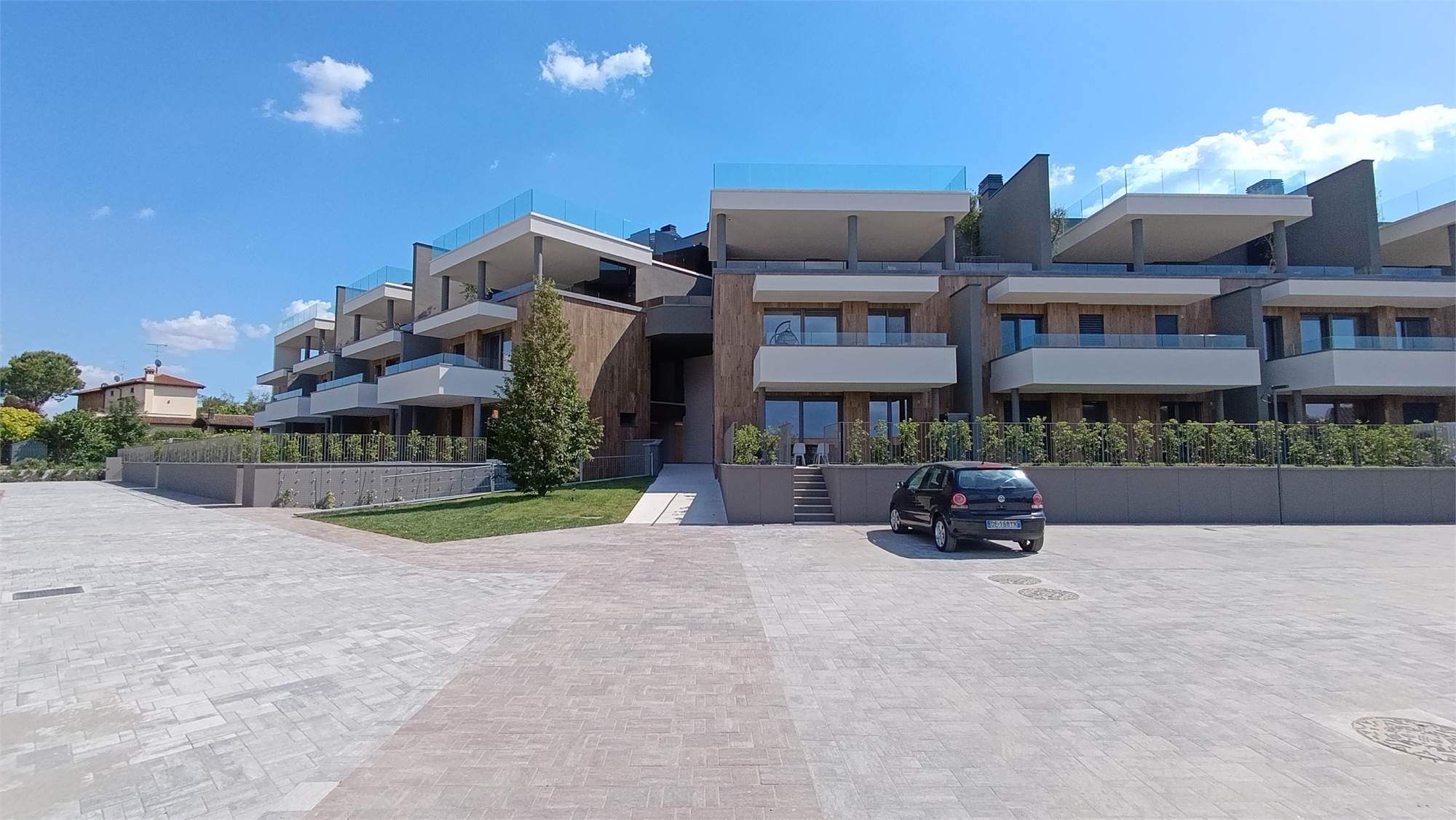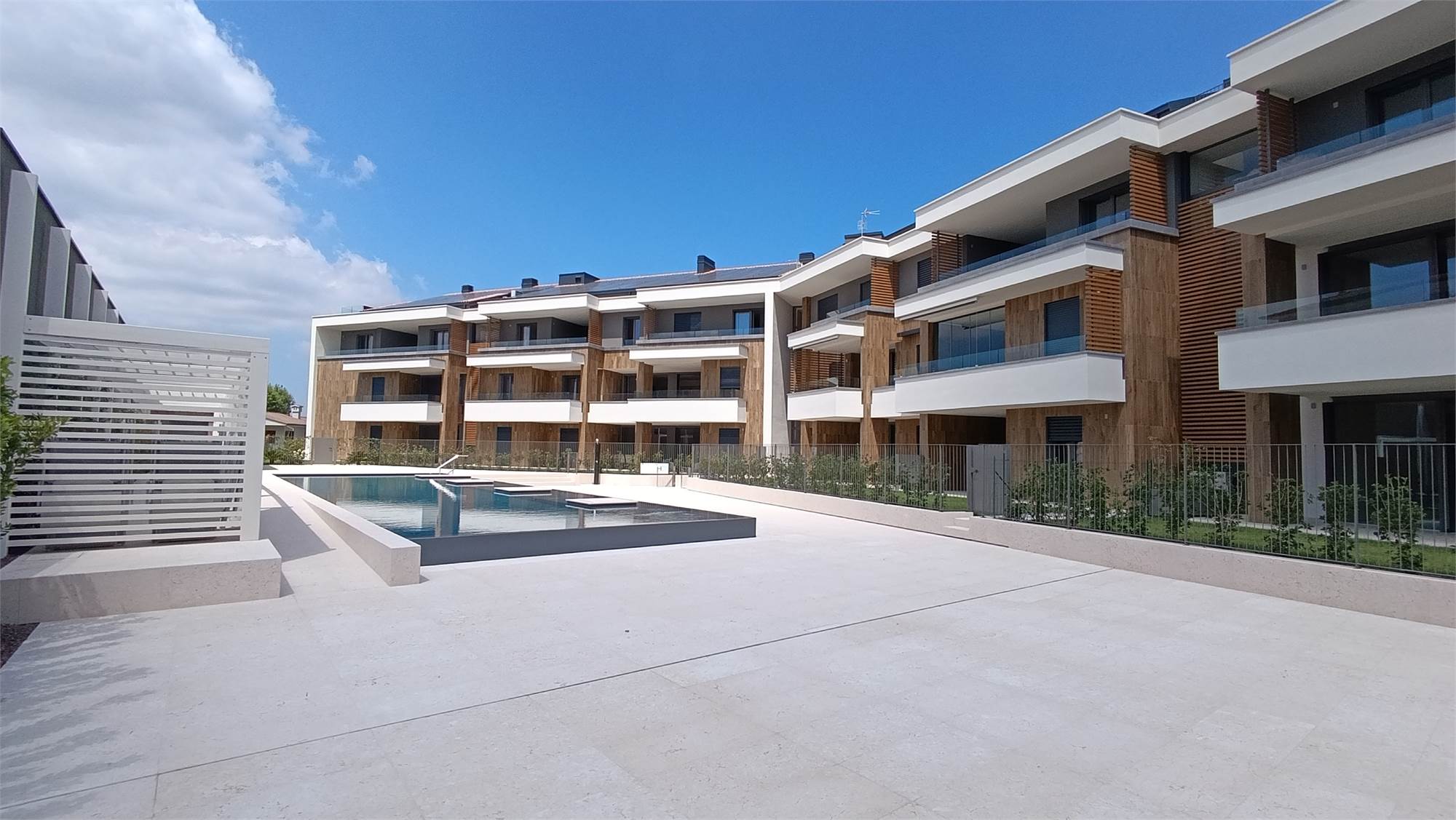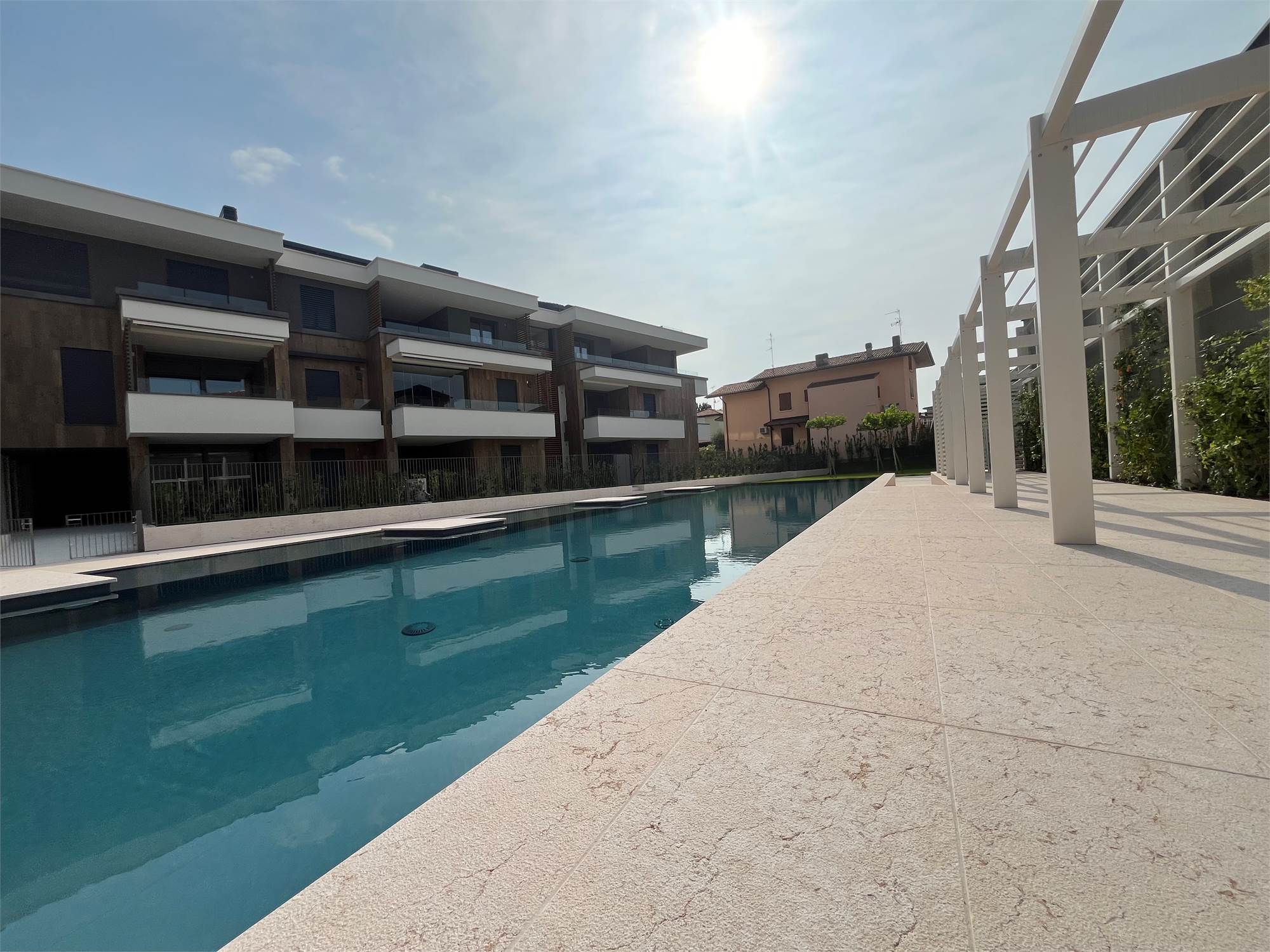 La residenza è dotata di ascensore, piscina scenografica con solarium, spazi verdi comuni e si completa con autorimesse private e cantine disponibili su richiesta.